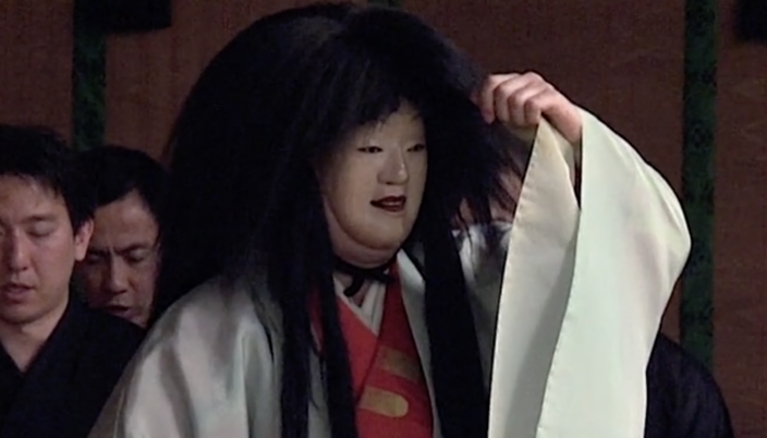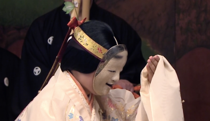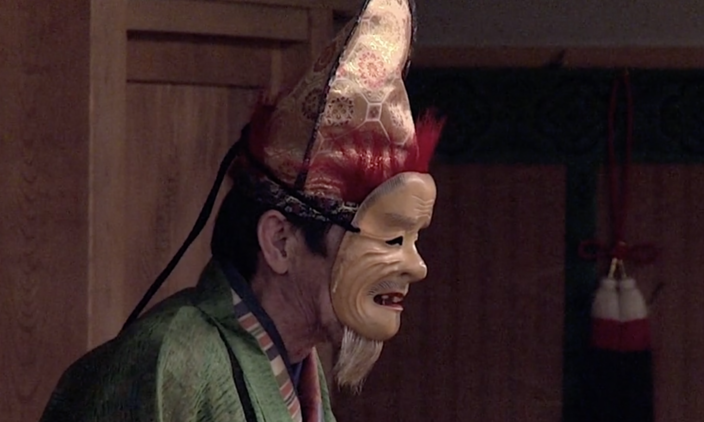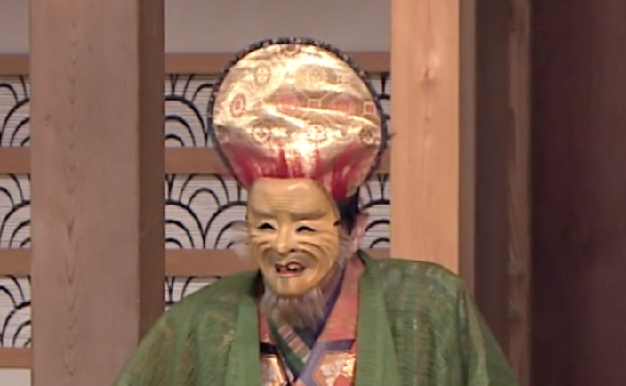 The mask used in the performance filmed is a Dei-kotobide carved by Iseki Bitchū no jō (Momoyama period)